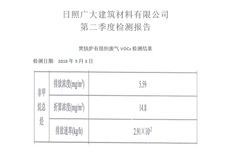 日照廣大建筑材料有限公司第二季度檢測(cè)報(bào)告