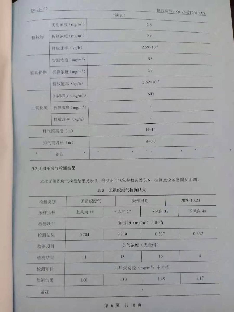 日照廣大建筑材料有限公司第四季度檢測(cè)報(bào)告